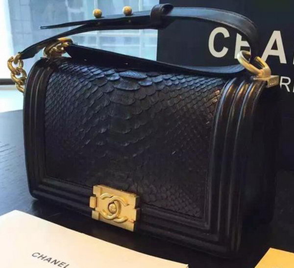 Home » Replica Handbags >> Chanel Handbag >> Chanel Le Boy >> Chanel Boy Flap Shoulder Bag Black Python Leather A66095 Gold