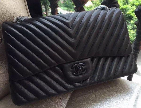 Home » Replica Handbags >> Chanel Handbag >> Chanel Classic Bag >> Chanel Classic Flap Bag Black Sheepskin Chevron Quilting A1113 Silver