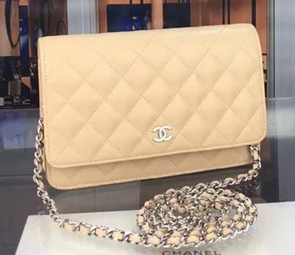 Home » Replica Handbags >> Chanel Handbag >> Chanel Flap Bags >> Chanel WOC mini Flap Bag Apricot Sheepskin A5373 Silver