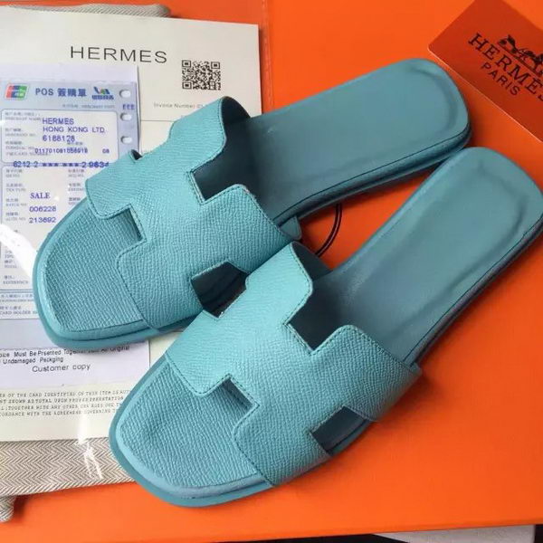 Hermes Slipper Calfskin Leather HO0476 Light Blue