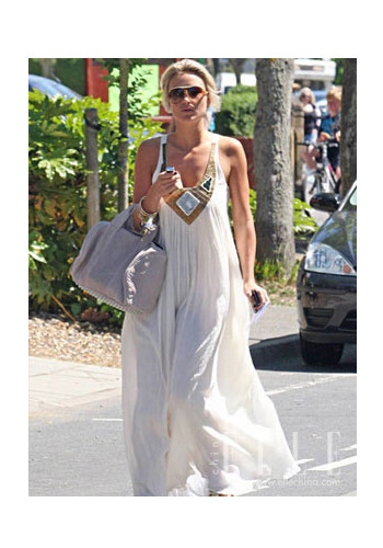 Alex Curran Gerrard with a grey dress collocation of white and purple purse, relaxed feeling is very strong, bag bottom rivet increased popular feeling, to dress up more tide stylish rider.